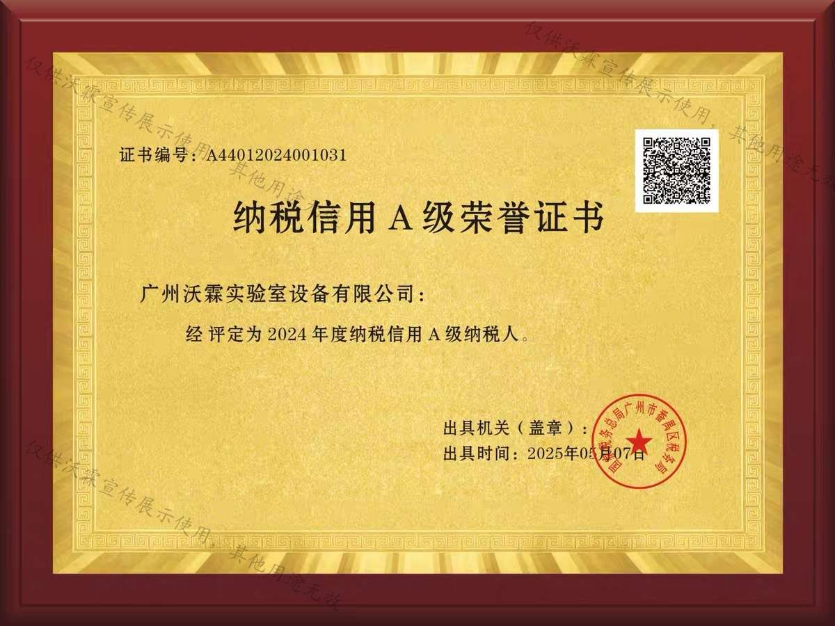 2025-06-11 喜讯|热烈祝贺广州沃霖实验室设备有限公司连续五年荣获“纳税信用A级纳税人”称号!